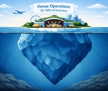 For most large events, delegate travel accounts for 70–90% of total emissions. While the industry has focused heavily on venue-based sustainability, these operational savings are often just the tip of the iceberg. The real environmental challenge, and the next frontier for our industry, lies outside the venue walls..