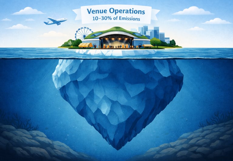 Over the last decade, we have made incredible progress in reducing venue footprints through renewable energy, water conservation, and eliminating single-use plastics. But these improvements often address only a fraction of the total impact.