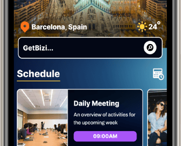 The Bizumi Go app harmoniously integrates your professional obligations with your personal time to achieve a true "bleisure" balance.