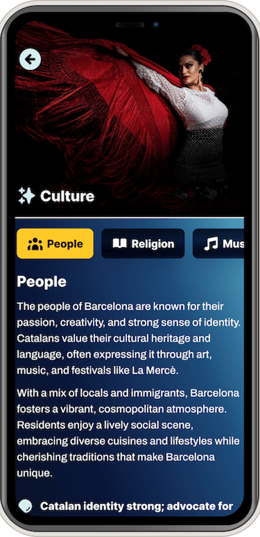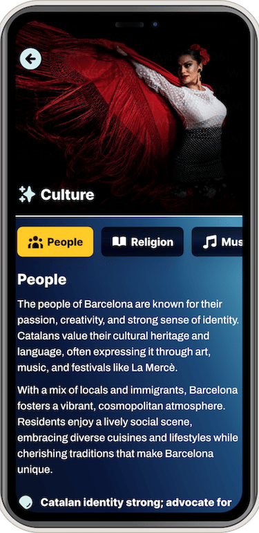 Arrival Survival: Instant access to a location’s unique identity, from language and history to sustainable transport options, helping you feel settled the moment you land.